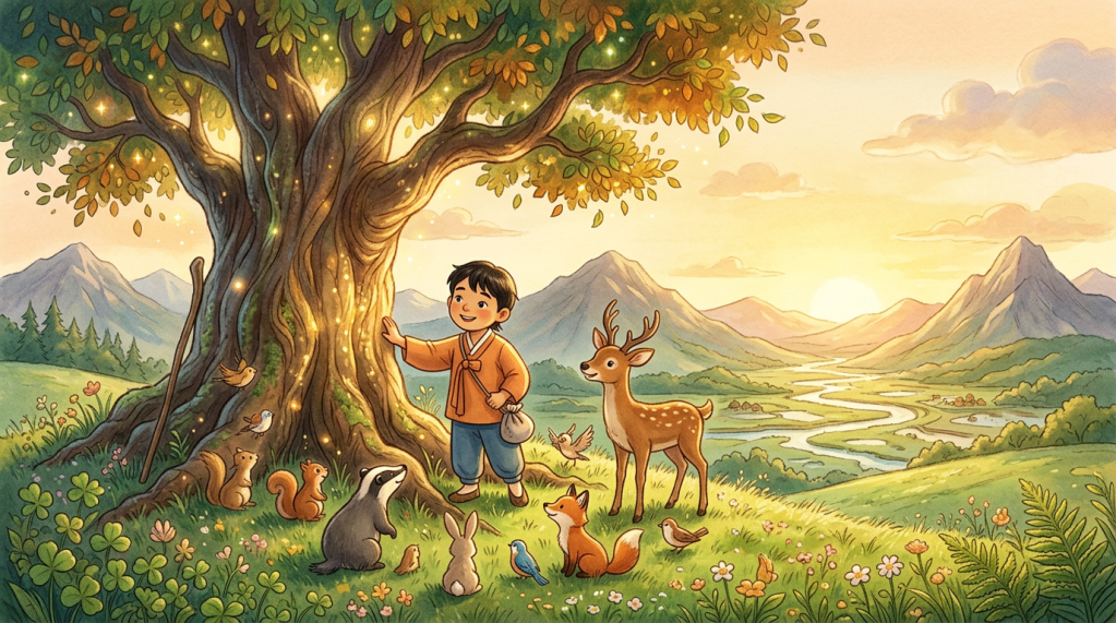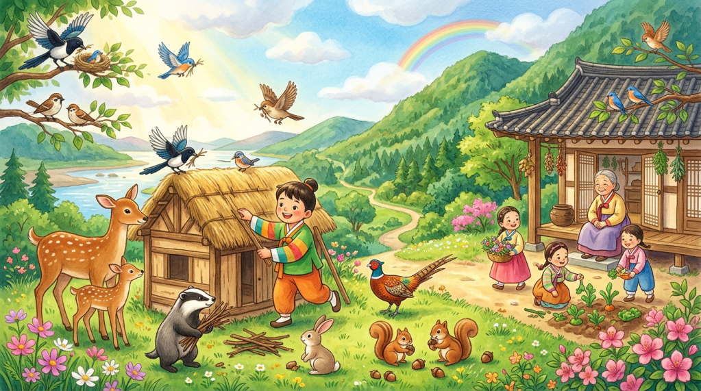 Another striking feature of the story is its view of animals. In many scenes, the animals behave with more loyalty and gratitude than the human boy who was rescued. This gives the folktale a special emotional depth. It suggests that the natural world is not separate from humanity, but deeply connected to it. It also reflects a traditional Korean sensibility in which nature is alive, responsive, and morally meaningful. The tree is not just wood, the animals are not just background figures, and survival is not simply physical. Everything in the story is part of a living moral universe.
