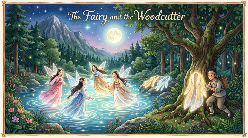 The Fairy and the Woodcutter is one of Korea’s most beloved traditional folktales. It tells the bittersweet story of a lonely woodcutter, a heavenly fairy, and a love that could not remain forever between earth and sky.