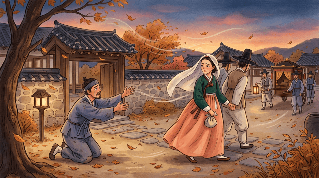 Yet The Snail Bride is not simply a happy fairy tale. In many traditional versions, their fragile life together is broken by outside power. While the snail bride is working, a passing official notices her beauty and tries to take her away. What follows turns the story from a magical romance into something far more emotional. In some versions, the couple is separated forever, and the story ends in grief. In others, the lovers are reunited through struggle, wit, or supernatural change. This variety of endings is part of what makes the tale so rich in Korean storytelling tradition.